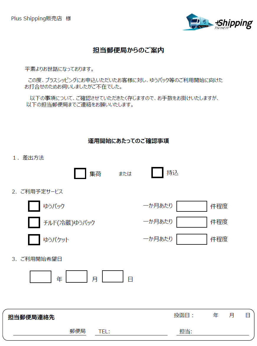 お申込みいただいた発送元へ、配送調整(集荷日時調整、送り状台紙お届け)のため、訪問がございます。